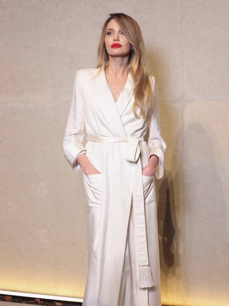 وأطلت جولي إلى جانب المدير الإبداعي للدار، حيدرأكرمان، على السجادة الحمراء بفستان حريري أبيض من مجموعة ربيع/صيف 2026، ضمن فعاليات أسبوع الموضة في شنغهاي، معتمدة أحمر شفاه من نفس الدار بدرجة Scarlet Rouge.